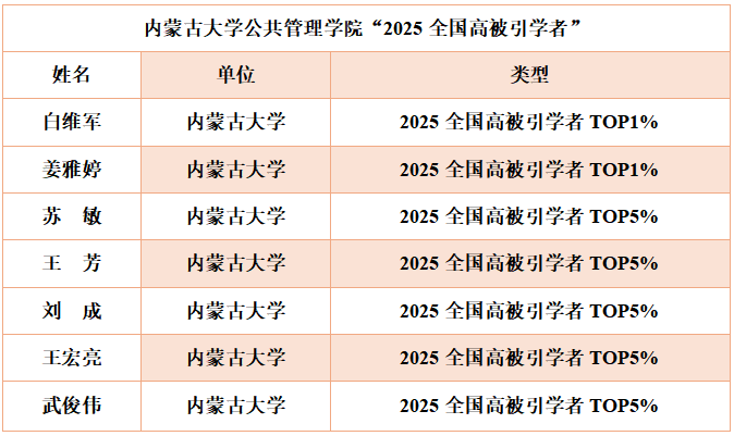 本年度评选方案在往年基础上进行了优化升级,公共管理学科评选出1206人入选2025全国高被引学者TOP1%,2449人入选2025全国高被引学者TOP5%,本次评价结果充分体现了我院教师的学术影响力和学科建设水平。