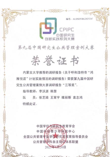 1.2023级MPA研究生巴特尔荣获第九届“全国道德模范”荣誉称号。