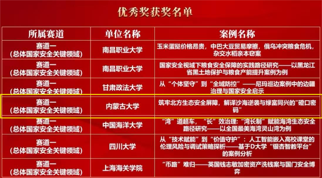 此次获奖是我院在国家安全学科交叉研究与案例教学领域取得的重要突破。学院将持续推进国家安全相关学科建设,鼓励师生围绕国家重大战略需求开展调查研究,深化校地合作与成果转化,为筑牢祖国北方生态安全屏障、服务更高水平的平安中国建设贡献智慧与力量。