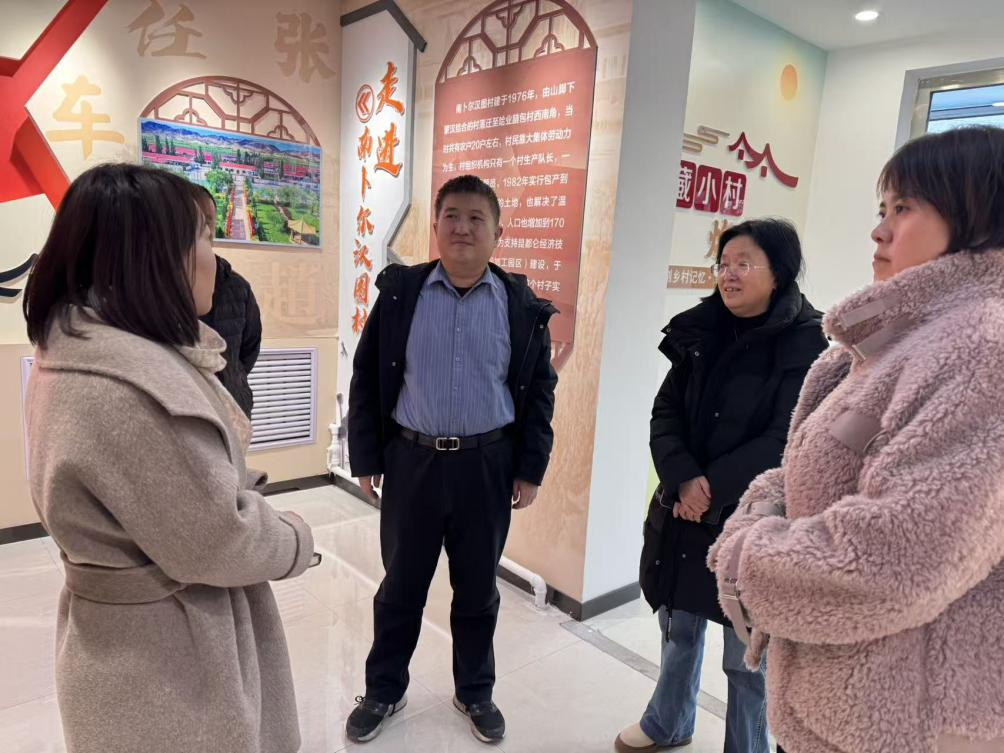 在卜尔汉图镇南卜尔汉图村,调研团队在村干部的带领下参观了村史馆,了解南卜尔汉图村由困到兴的村庄发展历程,重点就党建“五位一体工作法”助推乡村振兴的治理模式和“土地流转+股份合作+合作共享”的集体经济发展模式进行现场访谈,并实地进入农户家了解农民的生活生产情况。