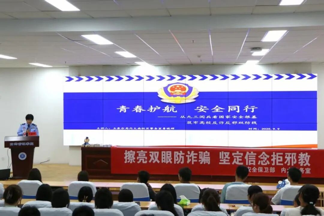 为进一步增强全院师生的安全防范意识,提升应对各类安全风险的能力,9月9日,我院在阶2A举办“青春护航,安全同行”安全教育讲座,玉泉分区内大玉泉校区警务室鲁晓辉警官主讲,2025级全体新生参会。