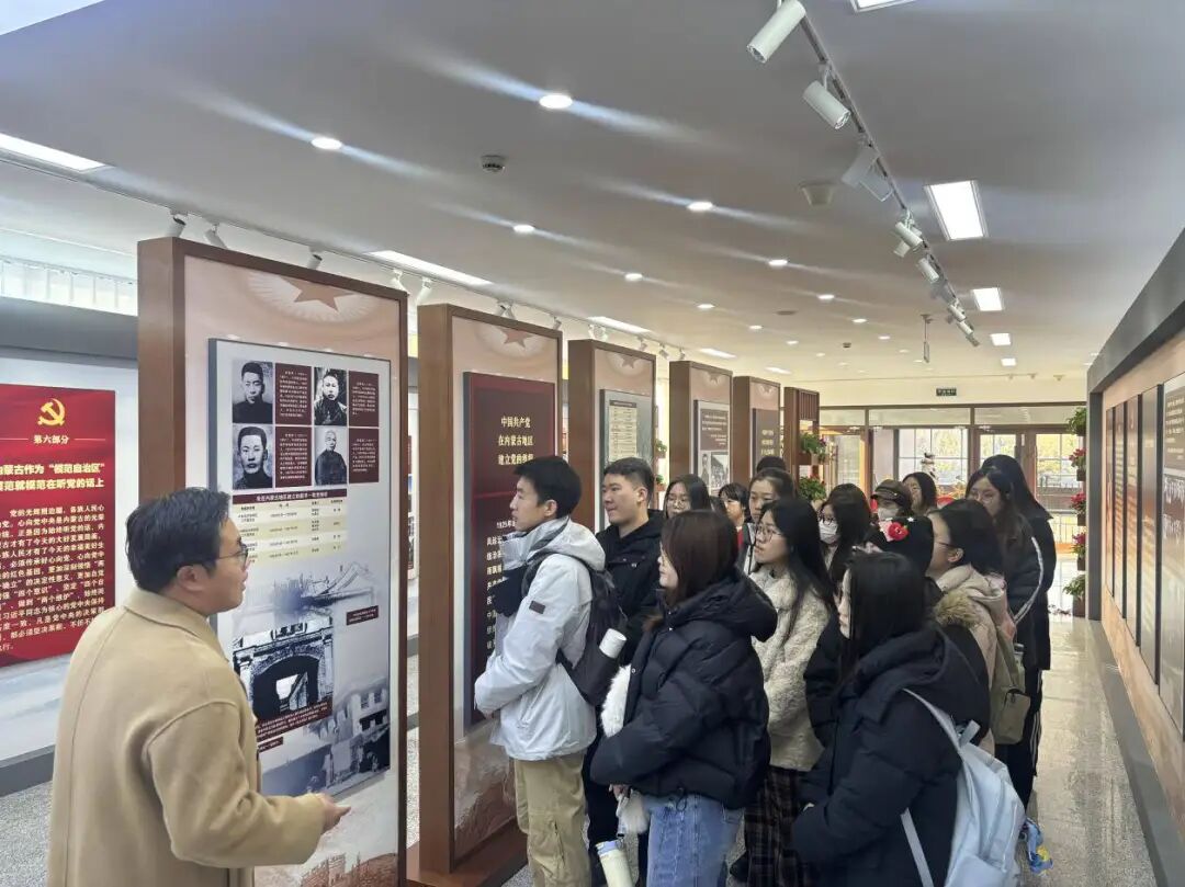 12月15日,太阳成集团tyc522cc组织本研党支部学生前往suncitygroup太阳集团桃李思政展厅,开展“感党恩、听党话、跟党走”主题党日活动。活动围绕中国共产党领导下,内蒙古自治区奋斗与发展的历程展开,助力学生沉浸式厚植家国情怀、坚定理想信念。我校“薪火杯”理论宣讲大赛薪火奖获得者,2022级政治学与行政学专业刘威担任讲解员。